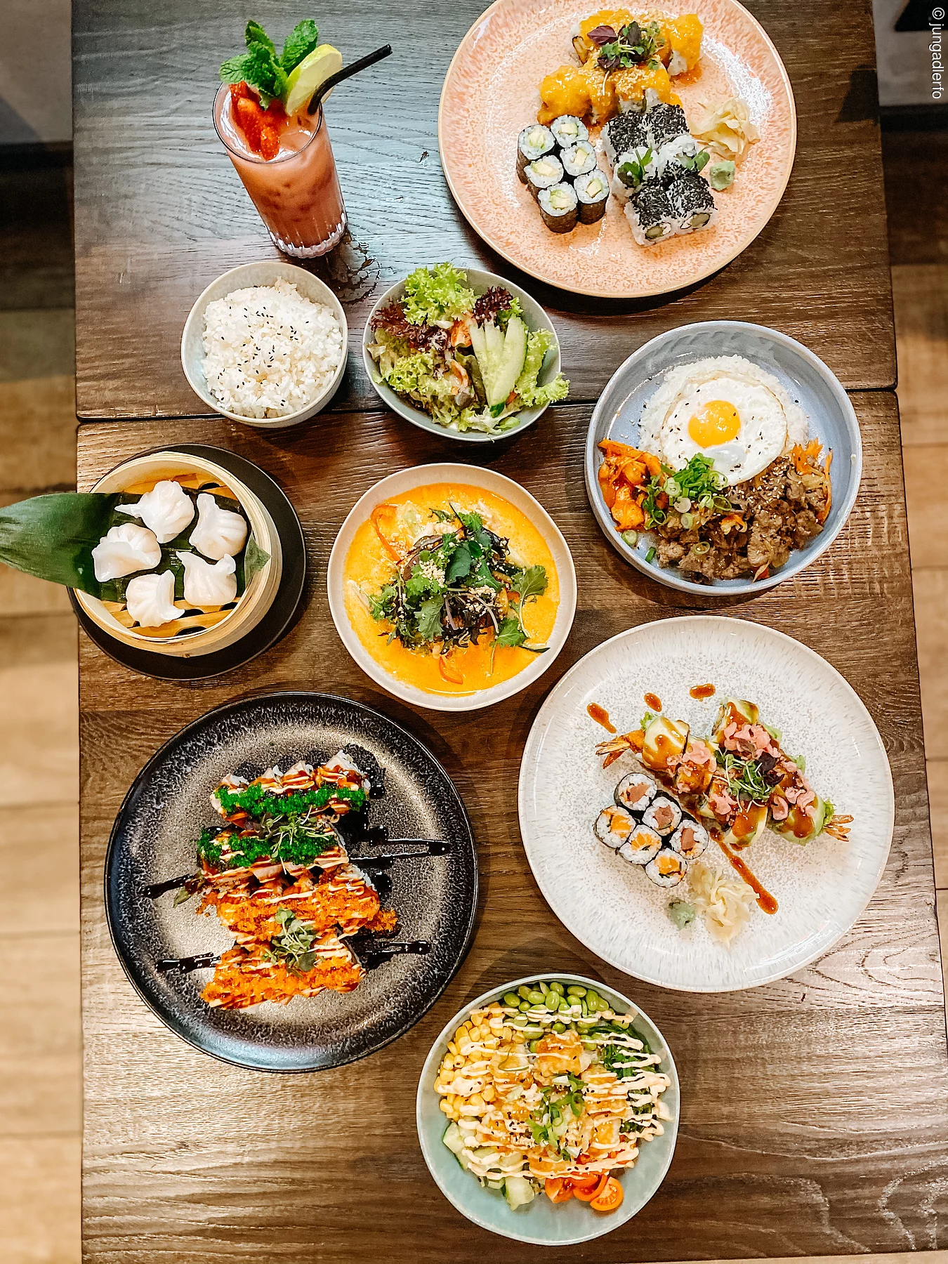 Ausgefallene und umwerfend leckere japanische und asiatische Speisen bietet dieses – ausschließlich von Frauen geführte – Familienunternehmen. Selbstverständlich darf hier auch eine große Auswahl an Sushi-Spezialitäten erwartet werden. Das saisonal wechselnde Angebot, die regionalen und frischen Zutaten sorgen dabei für eine besonders hohe Qualität. Die Liebe zum Detail beweisen die beiden Schwestern nicht nur mit ihrer Speisekarte, denn sie spiegelt sich auch in den Räumlichkeiten des Restaurants wider.