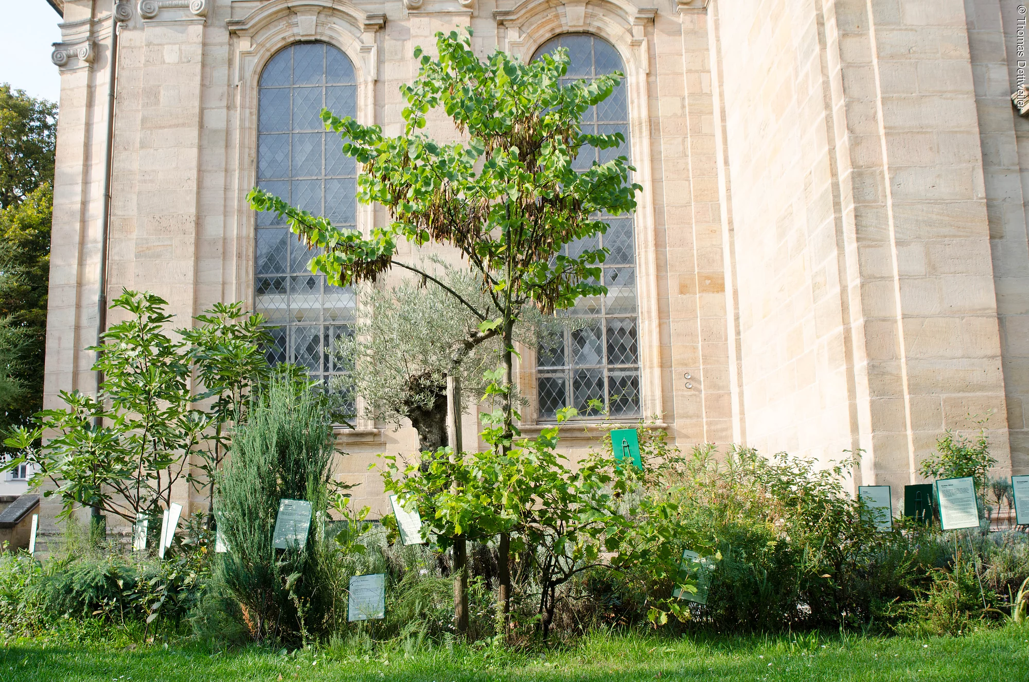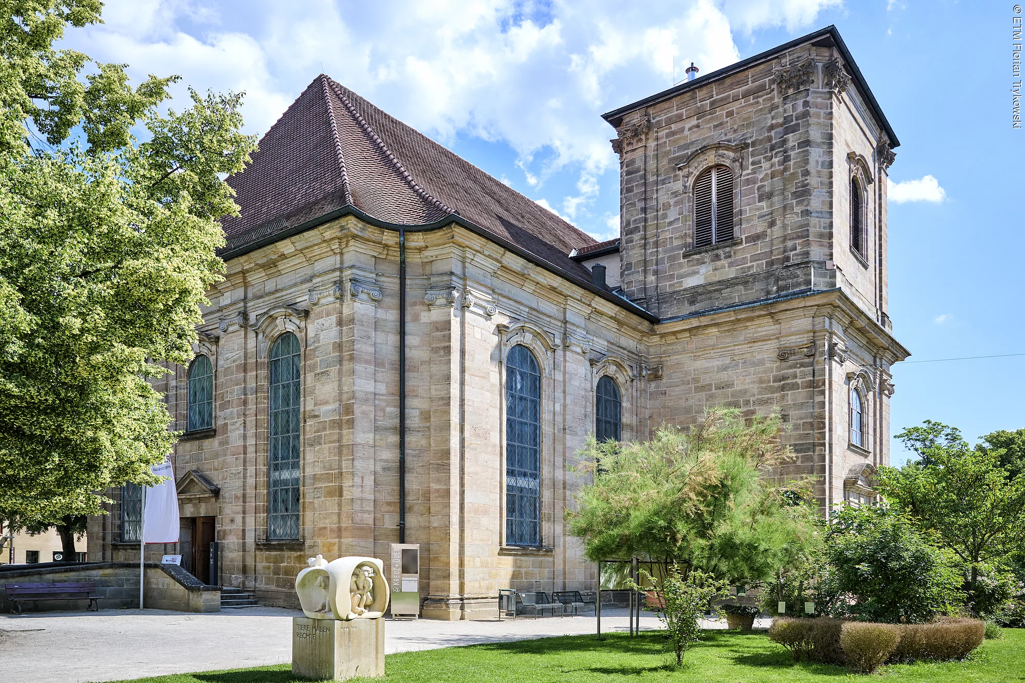 Mitten in der Stadt entstand hier eine kleine Oase der Ruhe: Der Erlanger Bibelgarten. Mit seinen Tafeln, Schildern und Skulpturen macht er verschiedene Themen aus der Bibel anschaulich und begehbar, die Bänke laden zum Verweilen ein. Der Erlanger Bibelgarten wurde im Umweltjahr 2007 von den Kirchen geschaffen.