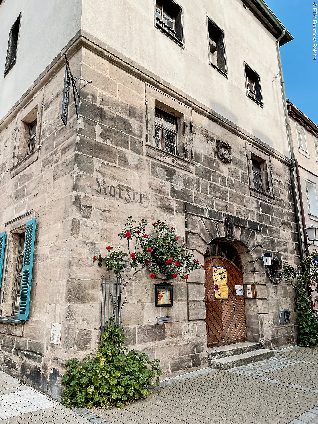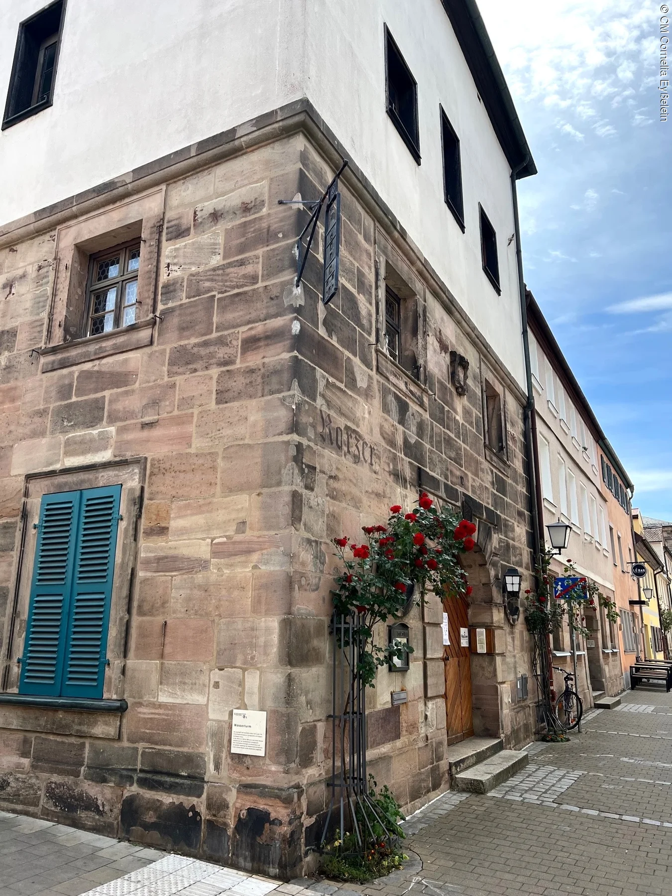 1705 als erster Turm der Neustadt gebaut, versorgte er die markgräflichen Wasserspiele in der Orangerie und im Schlossgarten. Ursprünglich war er sechsstöckig, die oberen drei Stockwerke wurden jedoch 1876 wegen Baufälligkeit abgetragen. 1839–98 wurden die Räume des dritten Stocks als Studentenkarzer genutzt. Heute beherbergt der ehemalige Wasserturm eine Musikschule.