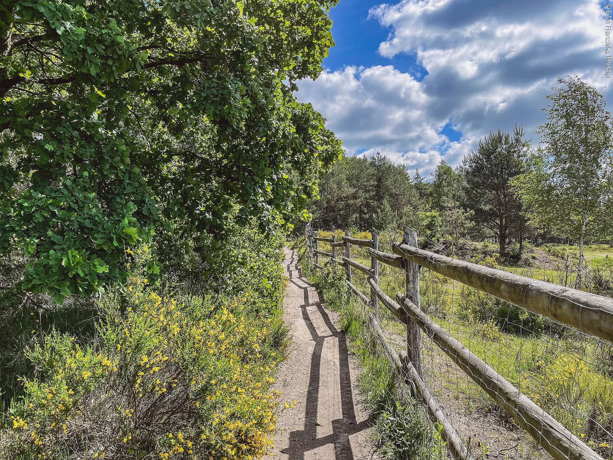 Eine wunderbare Aussicht bis zur Nürnberger Burg und bis in die Fränkische Schweiz kann man vom ehemaligen Kugelfangwall des Tennenloher Forsts' aus genießen, der das Gehege der Wildpferde fast in zwei Hälften teilt.