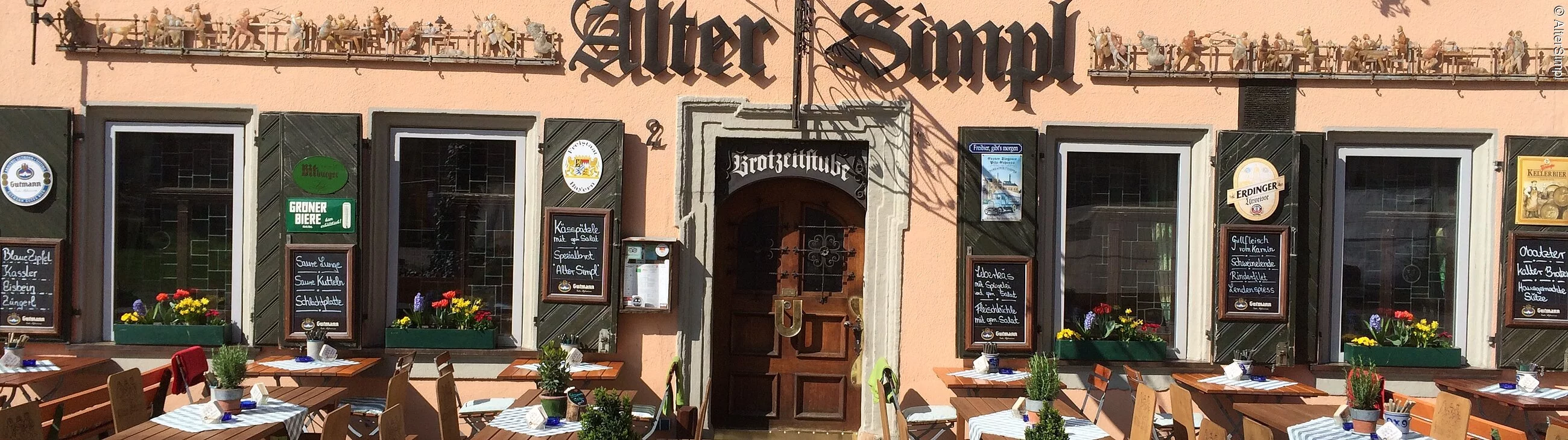 Gutes Essen, ganz Simpl. Nach diesem Erfolgsrezept wird in der fränkischen Traditionsgaststätte Alter Simpl seit nun schon fast 50 Jahren am Bohlenplatz gekocht. Dabei kommen nur gute, frische Zutaten in die Kochtöpfe. Hausgemachte fränkische und Grillspezialitäten werden den Gästen in der liebevoll eingerichteten Stube gereicht. Dazu ein fassfrisches fränkisches Bier, so weiß der Alte Simpl auch in schnelllebigen Zeiten mit fränkischer Gastlichkeit zu überzeugen. Gäste genießen auf der Terrasse des Alten Simpel den Blick auf den idyllischen Bohlenplatz. Hier treffen sich die Erlanger auch gerne auf ein gemütliches Feierabendbier im Biergarten, um einen langen Tag ausklingen zu lassen.