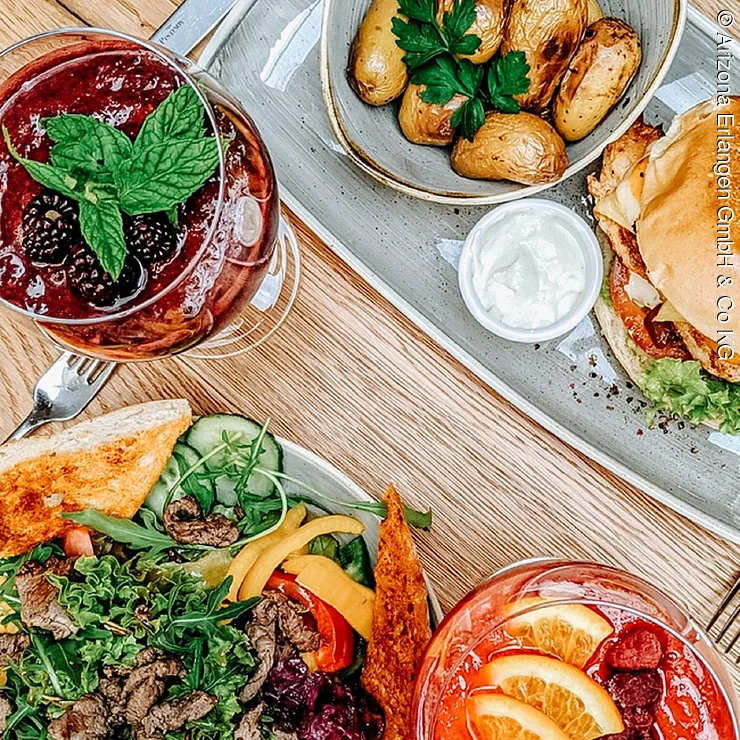 Wer Lust hat einen saftigen Burger zu schlemmen oder auch eine gesunde Bowl zu genießen, der kommt im „Arizona“ voll auf seine Kosten. Und das bereits seit 2013. Aber nicht nur herzhafte Burger und bunte Bowls stehen hier ganz oben auf der Speisekarte. Mit von der herzhaften Partie ist ebenso ein großes Angebot, was Barbecue anbelangt. Denn: Die Profiköche vom Arizona können mit Fleisch richtig gut umgehen und das schmeckt der Gast schon beim ersten Bissen. Egal ob Steak, Burger oder BBQ Ribs! Die beste Zutat dazu - das exzellente Fleisch - liefern fränkische Metzgerbetriebe. Wer kann da schon widerstehen, beispielsweise bei dem vier Stunden lang gesmoktem „Pulled Pork“?
