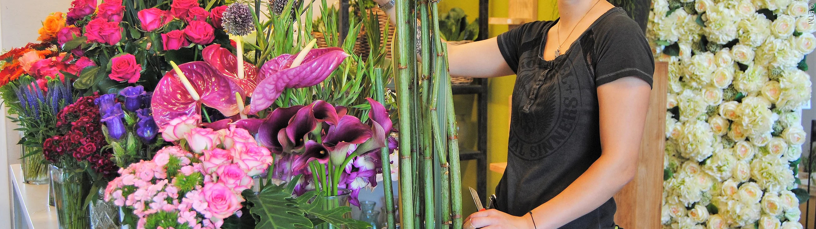 Blumen sind pure Lebensfreude. Kreativität ist unsere Stärke, denn wir sind ständig bestrebt nach neuen Ideen für unsere floristischen Arbeiten um einzigartige Sträuße, Dekorationen und vieles mehr für Sie zu kreieren. Das junge Team der Blumenwerkstatt stellt Ihnen das Besondere zusammen. Wir achten auf erstklassige Qualität und legen auch bei unserem Einkauf großen Wert auf Regionalität. Wir zaubern Ihnen floristische Werke für jeden Anlass.