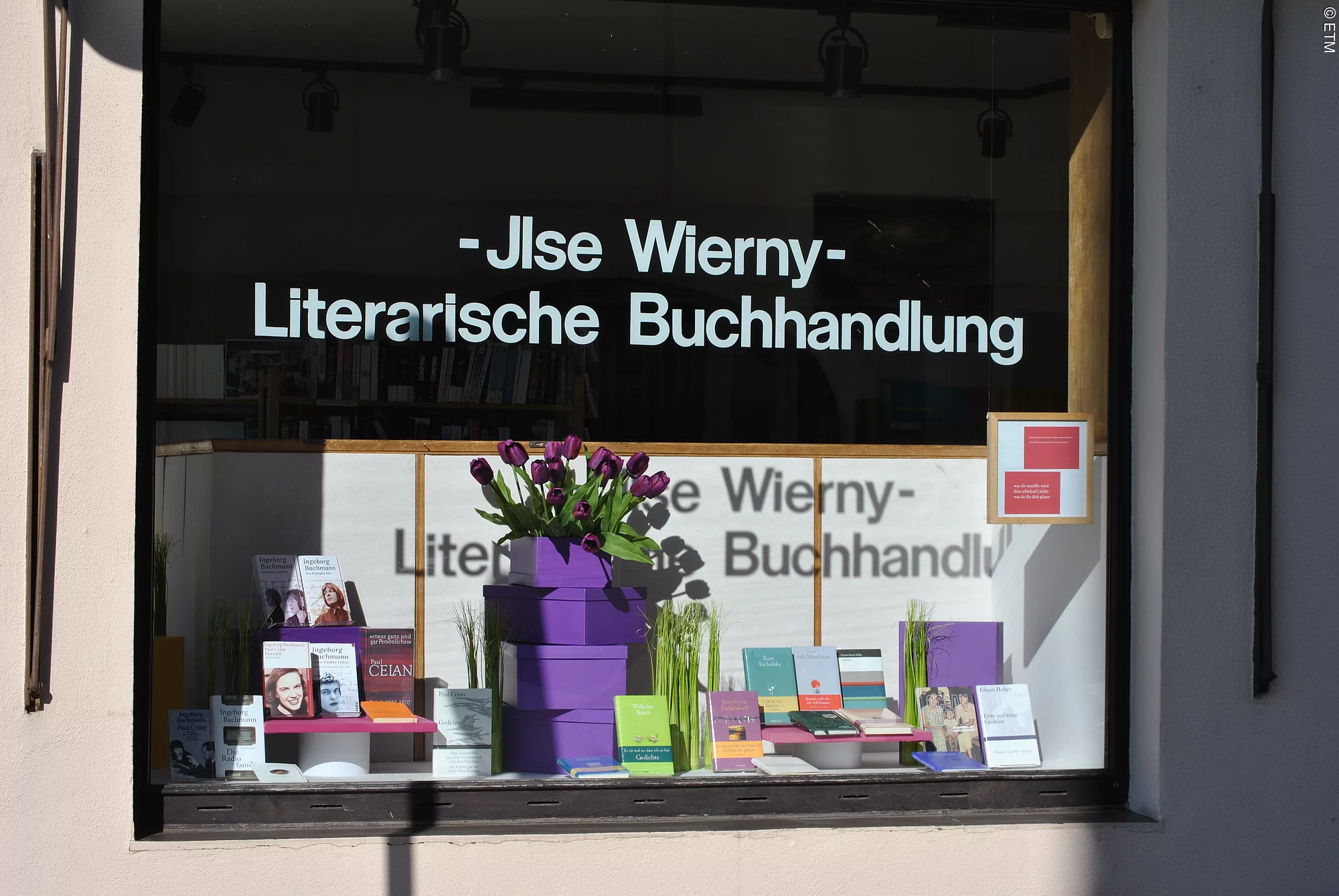 Ausgezeichnet mit dem „Deutschen Buchhandelspreis“ bietet Ilse Wierny ausgesuchte Literatur – nicht nur von den großen, etablierten Verlagen, sondern auch aus Kleinstverlagen. Und natürlich Lyrik in ungewöhnlich großer Auswahl. Entdecken lässt sich das ungewöhnliche Sortiment in Ruhe und Ungestörtheit in ihrer Buchhandlung an der Südlichen Stadtmauer 40.