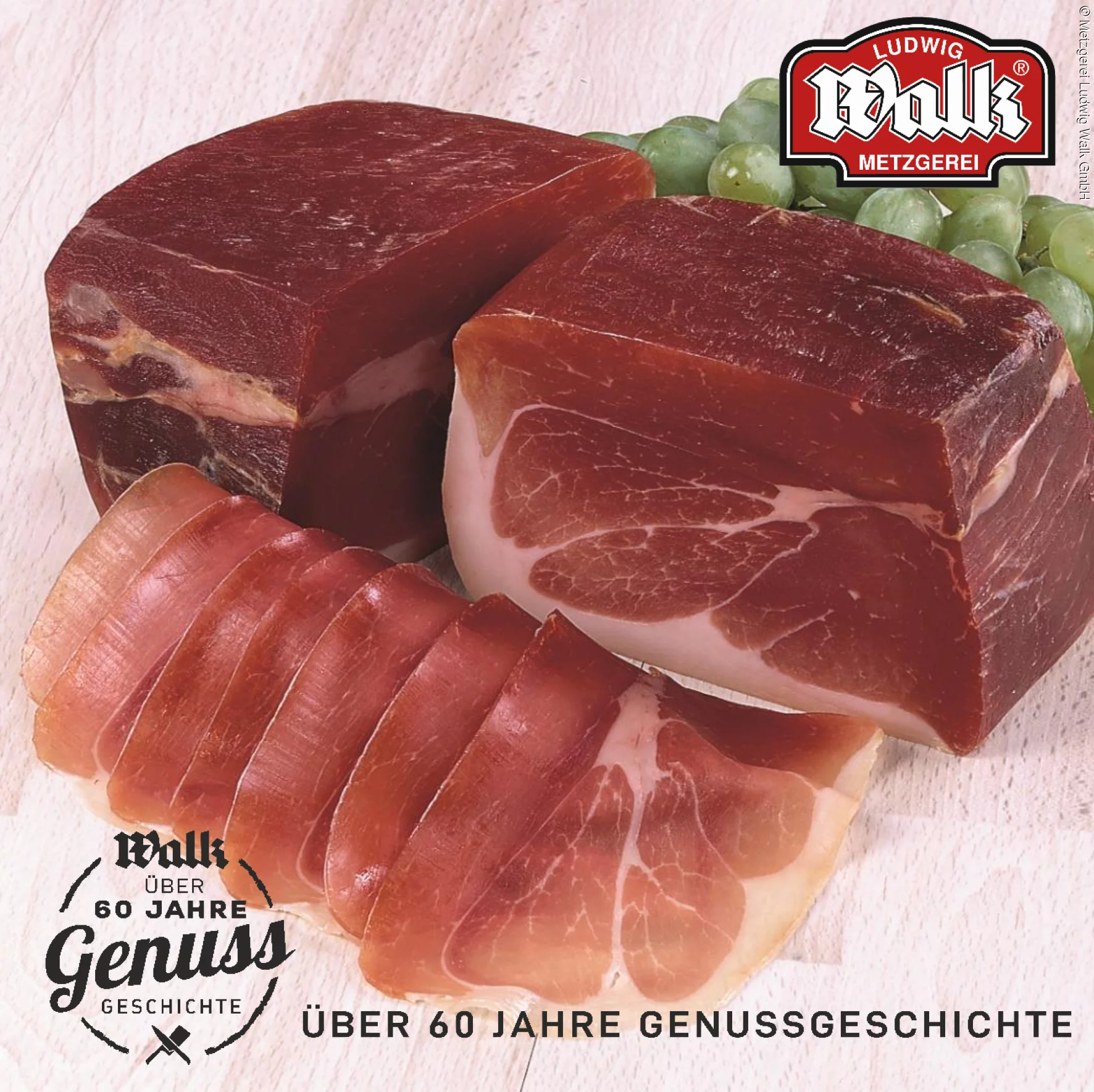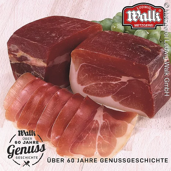 Die wichtigsten Zutaten für den Premium-Rohschinken aus dem Hause Walk sind: Expertise, Sorgfalt, Zeit und eine große Leidenschaft! Just 20 Lenze jung war Ludwig Walk als er 1958, als jüngster Metzger Bayerns, seinen Meisterbrief mit Auszeichnung erhielt. Zusammen mit seiner Gattin Grete eröffnete er 1959 in Mühlhausen die erste eigene Metzgerei. Seit 60 Jahren ist der Name Walk ein Begriff, wenn es um die Wurst und Qualitätsfleisch geht.