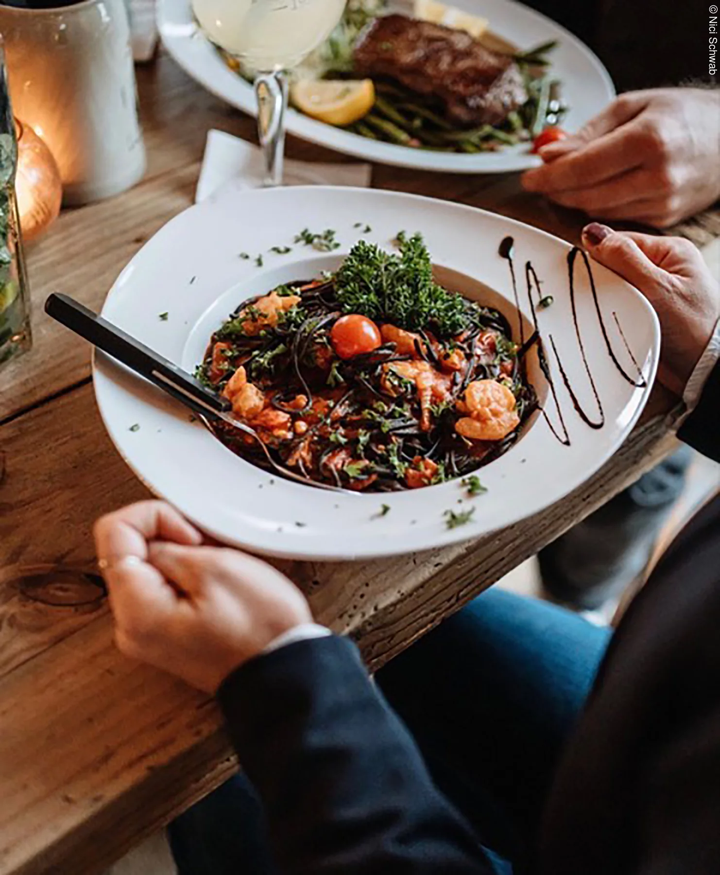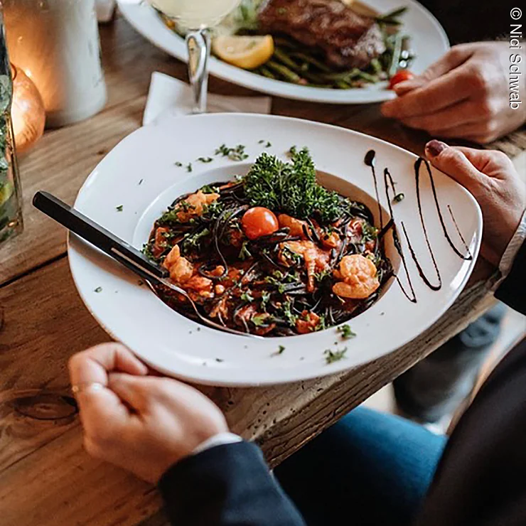 Von köstlichen, frischen und traditionellen italienischen Gerichten dürfen sich die Gäste hier verwöhnen lassen. „Schwarze Spaghetti mit Black Tiger Garnelen“ klingt da doch schon sehr verlockend, oder? Egal, ob Pizza, Pasta, Nudeln oder Fisch, in jedem Fall kommen hier Speisen, die mit viel Liebe angerichtet werden, auf den Tisch.