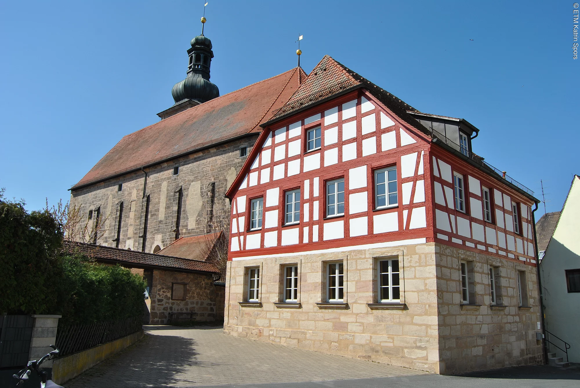 Ein Nonnenkloster, eine Aue und eine Ache (Fluss) sind die Namensgeber dieses Stadtteils, der sich sieben Kilometer südwestlich von Erlangen im Tal der Mittleren Aurach – einem Nebenfluss der Regnitz - befindet. Der historische Ortskern trumpft mit seiner ehemaligen Klosterkirche und ihrer Welschen Haube, dem benachbarten Museum im Amtshausschüpfla, den zum Teil vorbildlich restaurierten Fachwerkhäusern des 17. und 18. Jahrhunderts und der 1788 erbauten Aurachbrücke.