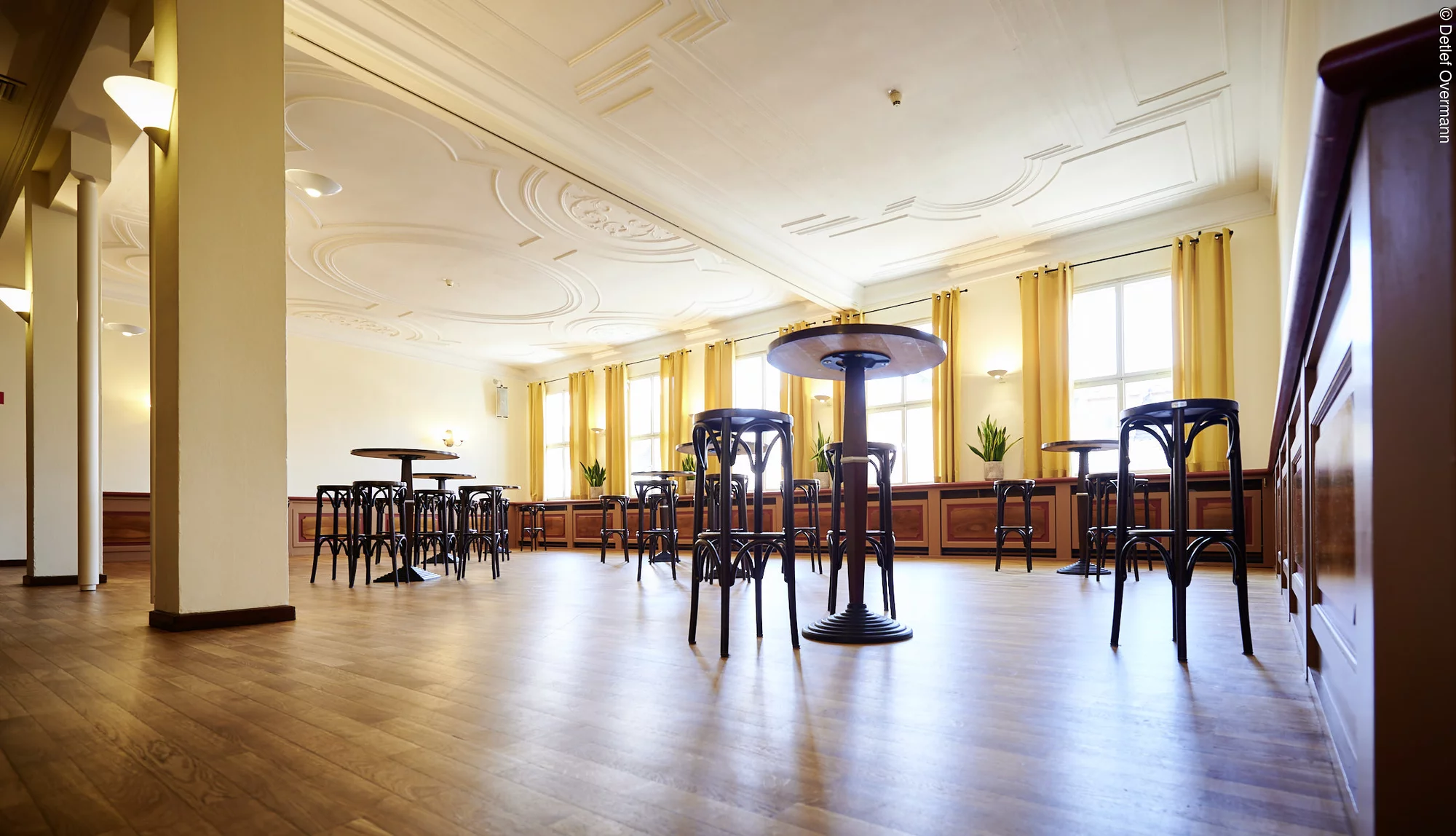 Der Redoutensaal ist ein barocker Festsaal aus dem Jahr 1750, gelegen im Herzen der Erlanger Altstadt, direkt neben dem Markgrafentheater und dem Schlossgarten. Das zweigeschossige Gebäude bietet im Erdgeschoss einen großzügigen Eingangsbereich mit einer Theke für Stehempfänge. Im ersten Obergeschoss erwartet Ihre Gäste ein weiteres Foyer mit Bar. Der Festsaal selbst, mit einer Fläche von 480 Quadratmetern, vereint das Flair vergangener Tage mit modernem Komfort. Sein Vintagestil verbindet Nostalgie und Moderne und eignet sich ideal für größere Veranstaltungen wie Vorträge, Teammeetings, Abend- und Tanzveranstaltungen, die eine besondere Atmosphäre schaffen Barrierefreiheit: Der Redoutensaal ist mit einem Aufzug und einer barrierefreien Toilette im Erdgeschoss ausgestattet.