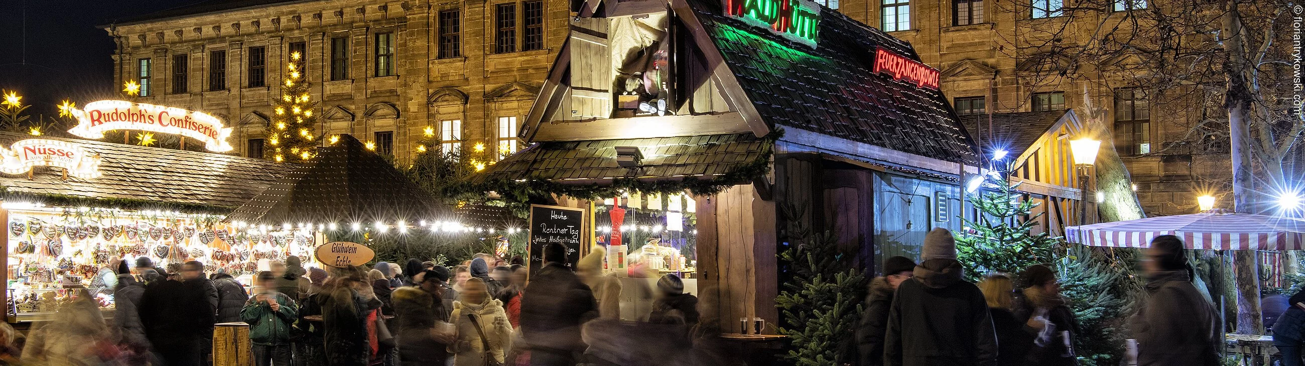 Wir dürfen sagen Erlanger Winterzauber³, denn in der Weihnachtsstadt Erlangen gibt es sogar drei Weihnachtsmärkte: die Erlanger Waldweihnacht auf dem Schlossplatz, den mittelalterlichen, historischen Weihnachtsmarkt am Neustädter Kirchenplatz und den Altstädter Weihnachtsmarkt am Altstädter Kirchenplatz.